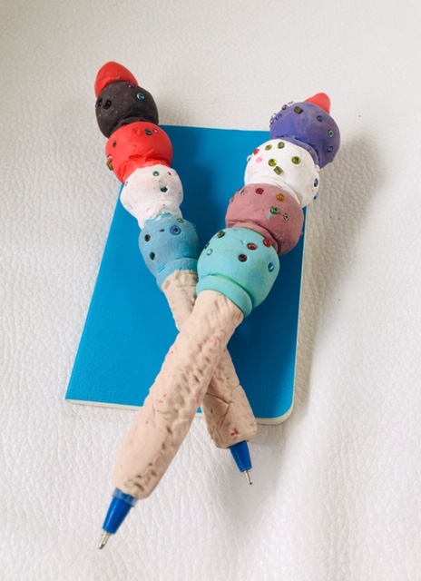 These ice cream pens are the perfect treat for back to school cool! Kids will enjoy working with polymer clay as they sculpt four scoops of “ice cream” over the exterior of a working pen. Glitter and seed beads finish off this fantastic project that is sure to be a winner with patrons!