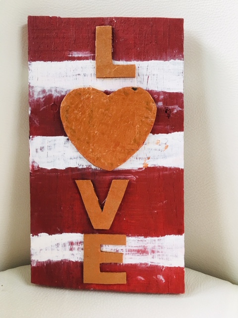 Kids will enjoy painting a heart felt message over reclaimed wood before adding bronze colored letters to complete this beautiful wall hanging.