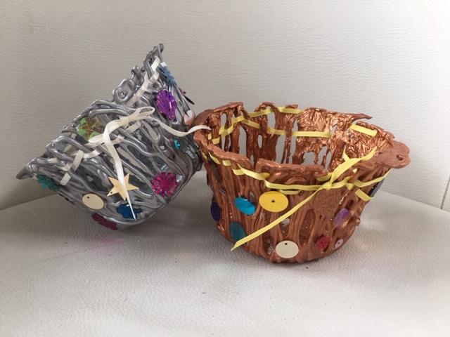 Teens and adults will enjoy creating metallic baskets made from a hot glue gun. A layer of metallic paint give the basket extra flair and would be perfect for gift giving and or holiday celebrations. Contact Catherine Martin to learn more.