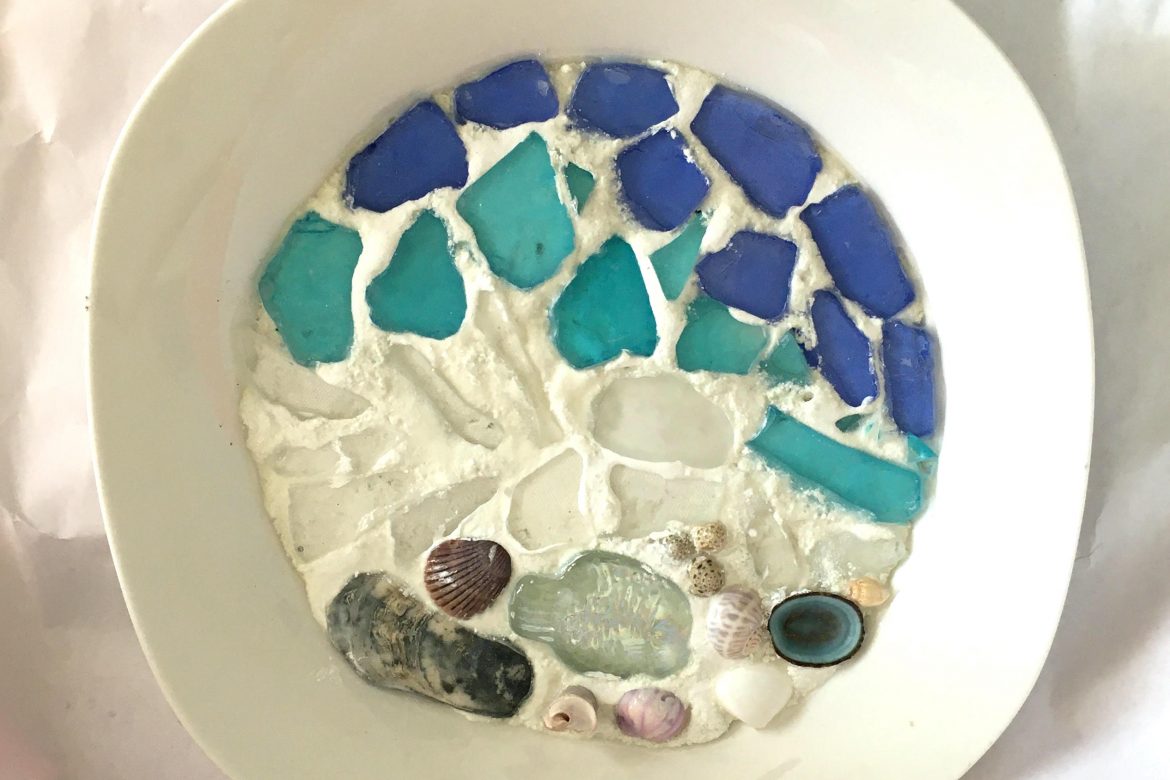 Welcome the summer into your home any time of year with this gorgeous sea glass and shells mixed media craft from Catherine Martin. Mosaics come lovely textures, colors and a fun to work with. Great for all ages, give Catherine a call to learn more!